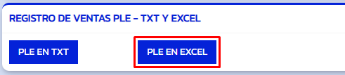 Para visualizar el "Registro de venta PLE" en formato EXCEL, seleccionaremos la opción PLE EN EXCEL.