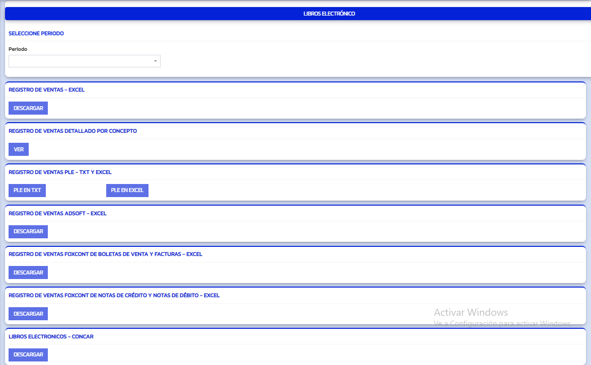 Seleccionamos el período del cuál queremos ver los registros de ventas.